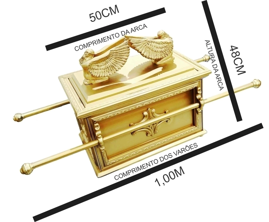 Réplica da Arca da Aliança, trabalhada em madeira e resina.
