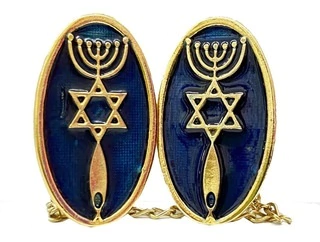 DESCRIÇÃO DO PRODUTO: PRENDEDOR DE TALIT FOLHEADO A OURO COM SIMBOLO MESSIÂNICO EM RELEVO E FUNDO RESINADO.